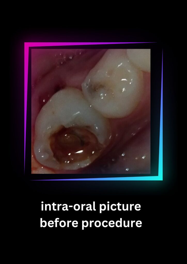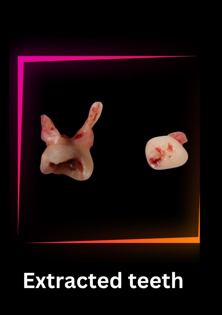 Upon understanding Muhammad’s discomfort, Dr. Bilal explained the problem in simple terms, assuring him that the treatment would be pain-free. Muhammad, now relaxed and reassured, nodded with a smile.Before administering anesthesia, Dr. Bilal applied a gentle topical numbing agent, ensuring that Muhammad felt minimal discomfort during the procedure. With expert precision, Dr. Bilal extracted both of Muhammad’s badly decayed primary molars, alleviating his pain and preventing further issues.